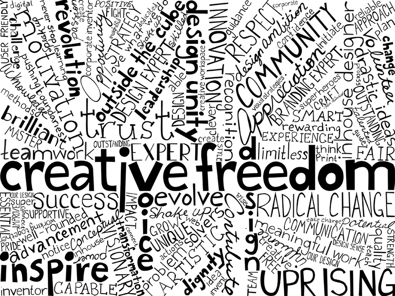 - The idea of « creative freedom » just stepped on my mind.